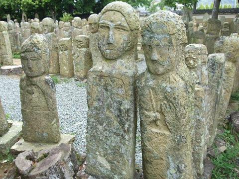 五百羅漢・・・「いつ、誰が、何のために」作ったかわからない四百余数の石仏たちが境内いっぱいに並んでいた。