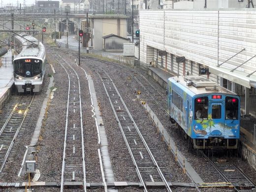 JR岩国駅の錦川鉄道せせらぎ号(右) (2024年10月撮影) |